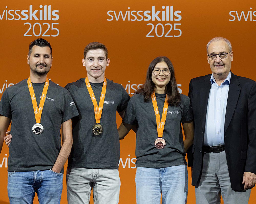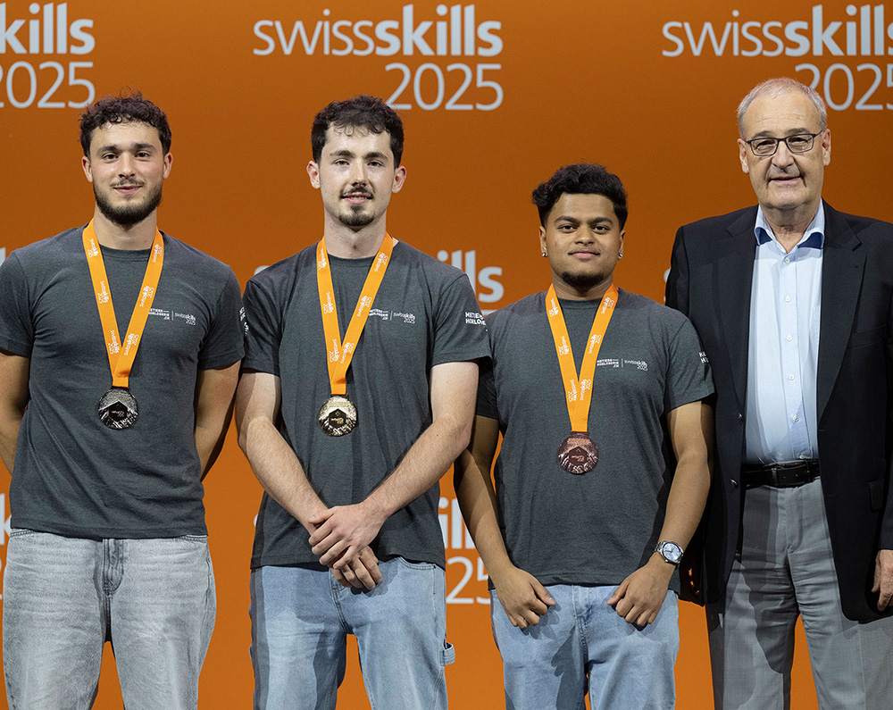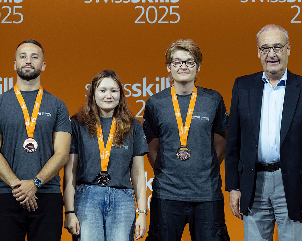 Les nouveaux champions nationaux des métiers de la microtechnique, médaillés d’or, d’argent et de bronze, ont savouré un instant unique, partagé avec leurs proches, sous les applaudissements nourris du Conseiller fédéral Guy Parmelin et du public.